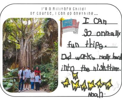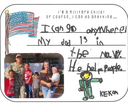 Hi my name is Winnie and I am a military child. I think being a military child is great because we get to move to new places but we lose our old friends. It’s okay though because we make new friends....